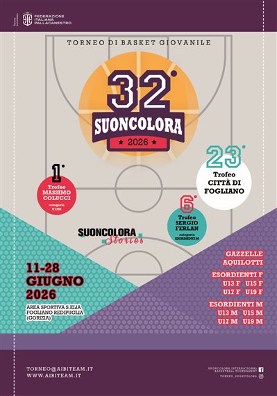 IL TORNEO SUONCOLORA, GIUNTO ALLA SUA 32° EDIZIONE, E’ UNA VERA E PROPRIA FESTA PER LA PALLACANESTRO GIOVANILE, CHE COINVOLGE LE SOCIETA’ DI TUTTO IL FRIULI VENEZIA GIULIA, MA ANCHE DI ALTRE REGIONI E DALL’ESTERO.